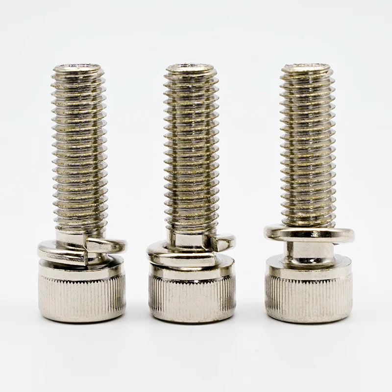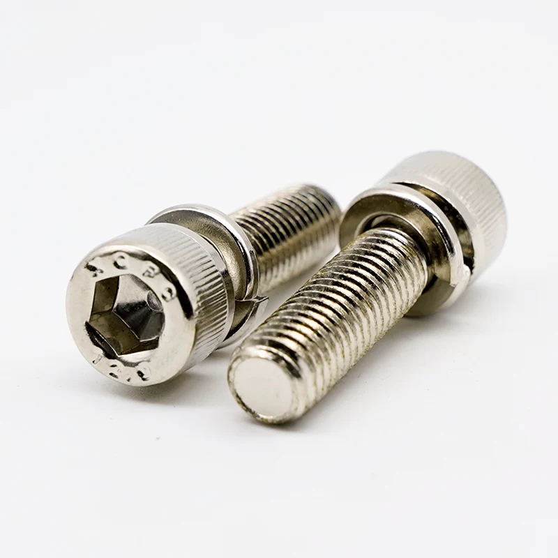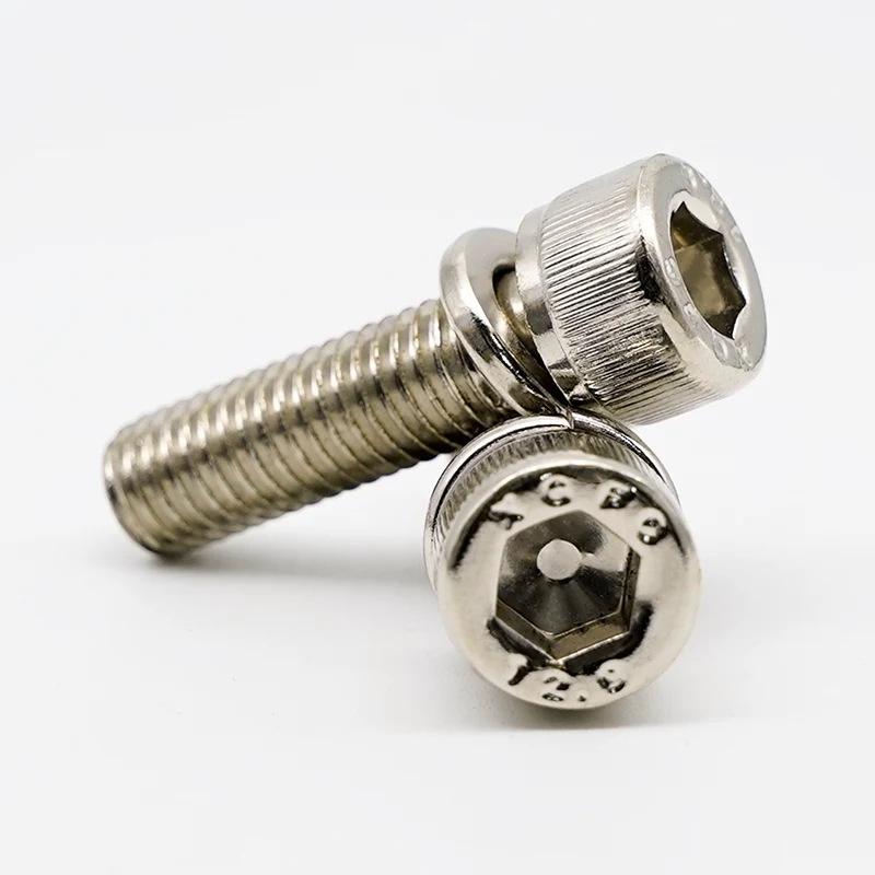 Slovenski JINSIXI को निकेल-प्लेटेड हेक्स सकेट हेड क्याप स्क्रूसँग स्प्रिंग वाशरहरूले DIN 912 सकेट हेड क्याप स्क्रूलाई प्रि-एसेम्बल गरिएको स्प्रिङ वाशरसँग जोड्दछ। The core function of the spring washer is to provide a continuous frictional force after tightening, resisting loosening caused by vibration. यसले गतिशील भार वा थर्मल विस्तार र संकुचन अवस्थाहरूमा सामान्य फ्ल्याट वाशर स्क्रूहरू भन्दा राम्रो प्रदर्शन गर्दछ।